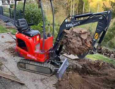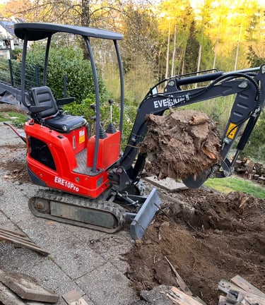Kleiner Bagger für Garten- und Bauarbeiten, einfach zu bedienen.